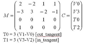 The Hermite matrix definition is incomplete, it should mention the C vector using (2D) tangents