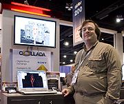 636 KB | Elf (talk | contribs) | COLLADA booth at GDC 2007. Luc Bolduc of Softimage giving COLLADA presentation. Photographer: Elizabeth Riegel Color corrected, cropped, contrast, lighting levels. Category:Event photos |