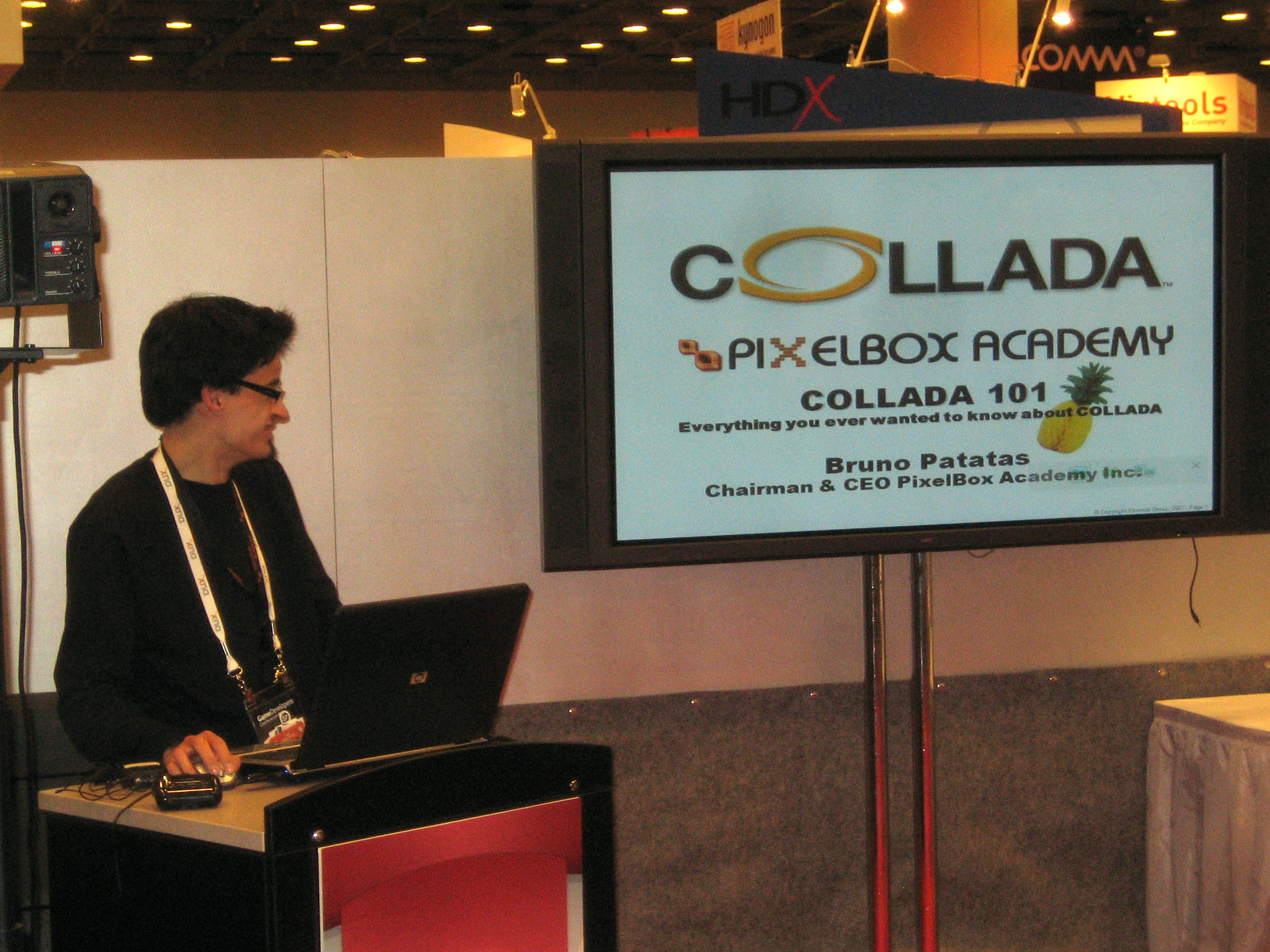 636 KB | COLLADA booth at GDC 2007. Luc Bolduc of Softimage giving COLLADA presentation. Photographer: Elizabeth Riegel Color corrected, cropped, contrast, lighting levels. Category:Event photos |